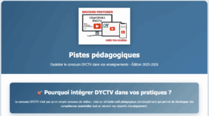 La nouvelle session du concours DYCTV – Deviens YOUTUBER ! Crée Tes Vidéos 2025-2026 arrive. Vos élèves et étudiants peuvent commencer à réfléchir à leurs futures productions.